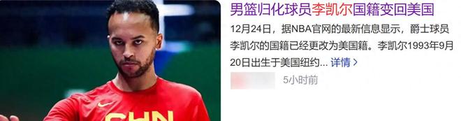 中國(guó)男籃首位歸化球員李凱爾的國(guó)籍標(biāo)注,從“中國(guó)”變回了“美國(guó)”。