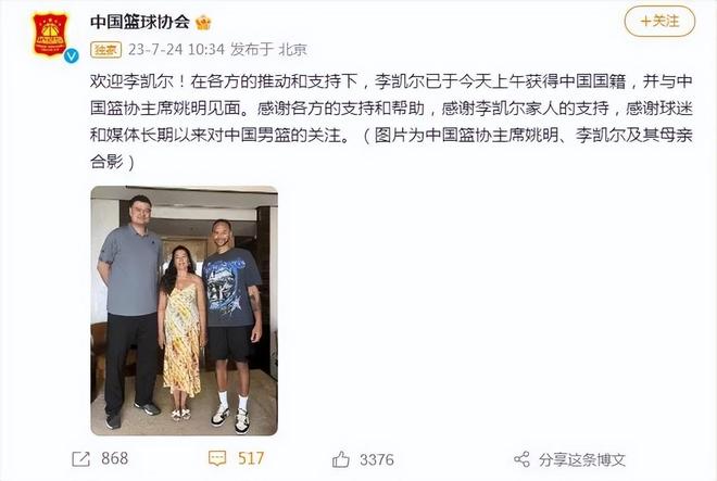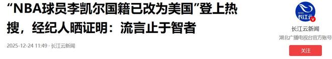 長(zhǎng)江云新聞|“NBA球員李凱爾國(guó)籍已改為美國(guó)”登上熱搜,經(jīng)紀(jì)人曬證明:流言止于智者
