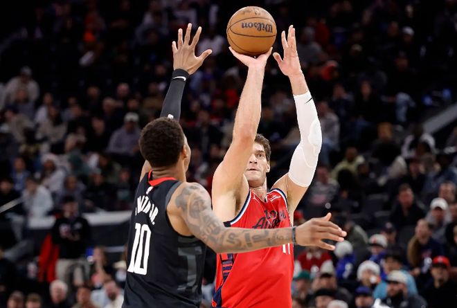 洛佩斯本賽季的整體表現(xiàn)當(dāng)然是慘不忍睹的水平。作為一名中鋒,他的投籃命中率甚至不足四成,簡直是低到了離譜的程度,更何況他的投射能力也并不是那么穩(wěn)定。洛佩斯在防守端的問題同樣相當(dāng)明顯,他在移動速度方面的短板肉眼可見,他的防守覆蓋面積非常有限,而且他在防守專注度方面也是大不如前了。也是因此,洛佩斯的出場時間并不多,甚至一度跌出了球隊的輪換陣容。沒想到本場比賽頂替伊維察-祖巴茨(Ivica Zubac)進入先發(fā)之后,這樣的安排竟然取得了奇效,洛佩斯在場上的效果驚人要比想象中強出一大截,真是令人有些意外。