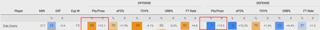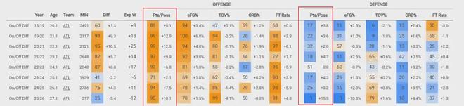 過往楊對進(jìn)攻的提升足以覆蓋他對防守的負(fù)面作用。這賽季在樣本擴(kuò)大后,或許也能做到。但老鷹跟過去也不一樣了,即使沒有楊,老鷹依舊有兩個(gè)場均20+的球員,全隊(duì)7人得分上雙,不乏組織者和開發(fā)手。這種平均略有突出的配置特點(diǎn)或許上限不高。楊以絕對失衡的特點(diǎn)定義球隊(duì),想要走很遠(yuǎn)也不容易,而對此的質(zhì)疑已經(jīng)持續(xù)了幾個(gè)賽季。想要終結(jié)疑慮,楊和老鷹得證明曾經(jīng)的東決高度是可復(fù)制的。