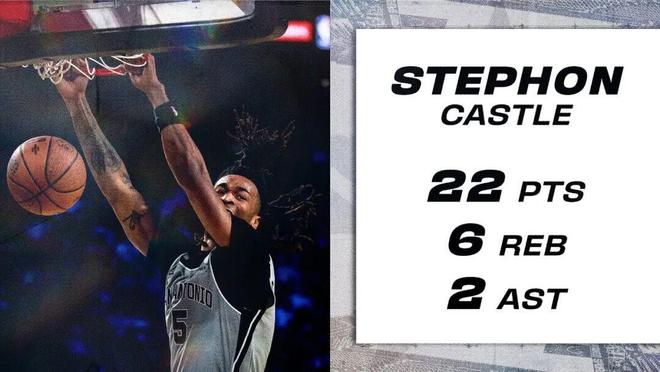 需要說的是,就在不久前,NBA杯半決賽,馬刺也曾經擊敗過雷霆,當時是111-109險勝對手,那場比賽的卡斯爾也是表現(xiàn)亮眼:全場打了34分鐘,投籃16中9,三分5中2,罰球2中2,拿了22分6籃板2助攻。