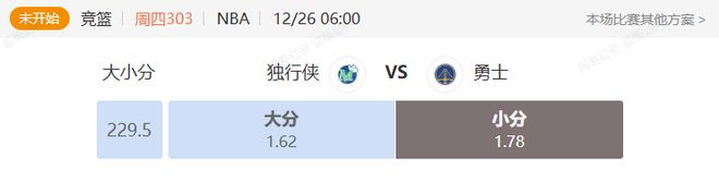 在一分險勝掘金之后,獨行俠本場的對手,是金州勇士,勇士上一場比賽以23分大勝魔術(shù),近期取得了兩連勝,此番對陣獨行俠,兩隊上賽季互有勝負,本賽季,庫里再度與老伙計克萊對陣,結(jié)合兩隊上一場狀態(tài)都不錯的情況,勝負并不好說,但在比分方面,值得留意的是,本場獨行俠多名悍將,如華盛頓,湯普森,克里斯蒂均因傷出戰(zhàn)成疑,這使得球隊的外線火力有了不小的下滑,而勇士一方,球隊上一場打出了很高效的防守能力,不過近期整體得分也不算很高。結(jié)合獨行俠整體外線投射平平的特質(zhì),或許,小比分,是本場最合適的選擇。