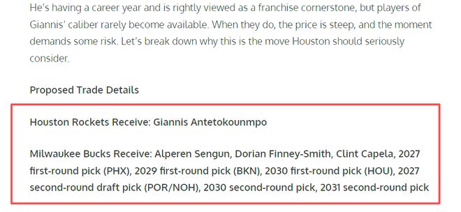 美媒Fadeaway World發(fā)文,提出一個(gè)潛在的交易方案,火箭9換1豪賭字母哥,具體籌碼分配如下: 火箭得到字母哥;雄鹿得到:申京、多里安?芬尼?史密斯、卡佩拉、2027年首輪簽(來(lái)自太陽(yáng))、2029年首輪簽(來(lái)自籃網(wǎng))、2030年首輪簽(火箭自身)、外加3個(gè)次輪簽。從籌碼構(gòu)成來(lái)看,火箭為得到字母哥真的是“大出血”:不僅送出了球隊(duì)培養(yǎng)的核心中鋒申京,還打包了防守悍將芬尼?史密斯、內(nèi)線輪換卡佩拉,以及未來(lái)7年內(nèi)的3個(gè)首輪簽和3個(gè)次輪簽。這樣的籌碼規(guī)模,足以體現(xiàn)火箭沖擊總冠軍的決心,也符合字母哥這種劃時(shí)代巨星的交易價(jià)值——畢竟,歷史上能改變聯(lián)盟格局的超級(jí)巨星,從未在交易市場(chǎng)上廉價(jià)過(guò)。