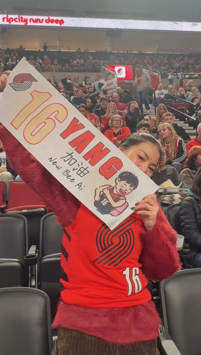 “一起進(jìn)來的二三十個(gè)孩子們(從各地飛來波特蘭看楊瀚森的華人球迷)要買球衣,要找楊瀚森簽名,孩子買球衣的時(shí)候,不是一件一件買,是一堆一堆買,(一個(gè)人)一千多刀,經(jīng)理眼都直了,售貨員眼都直了,來這樣買球衣的,除了楊瀚森的球衣這樣賣過,沒有一個(gè)球員的球衣是這樣賣的。”
