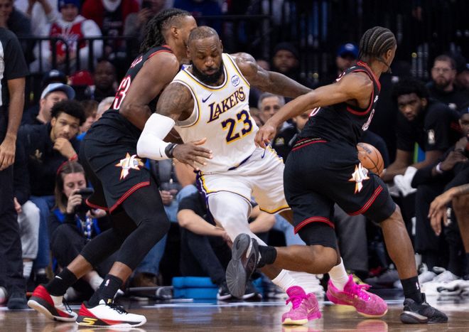 東契奇的刷分屬性,里夫斯高端局不穩(wěn)定,其實對于即將41歲的老詹來說,湖人的整體環(huán)境對他很不友好。除了要承擔(dān)串聯(lián)銜接段重任之外,當(dāng)另外兩位核心倒下時,詹姆斯必須切換得分模式,畢竟他年齡擺在那里,如果我們再苛求他有穩(wěn)定的防守,那確實過分了。但還是要說,如果詹姆斯希望能幫到球隊,他必須做出一些改變。從一組數(shù)據(jù)說起:本賽季詹姆斯在場時,湖人進(jìn)攻效率121.0,防守效率124.7,百回合輸對手3.6分;詹姆斯不在場時,湖人進(jìn)攻效率118.8,下滑不大,但防守效率提升到116.7,百回合贏對手2.1分。