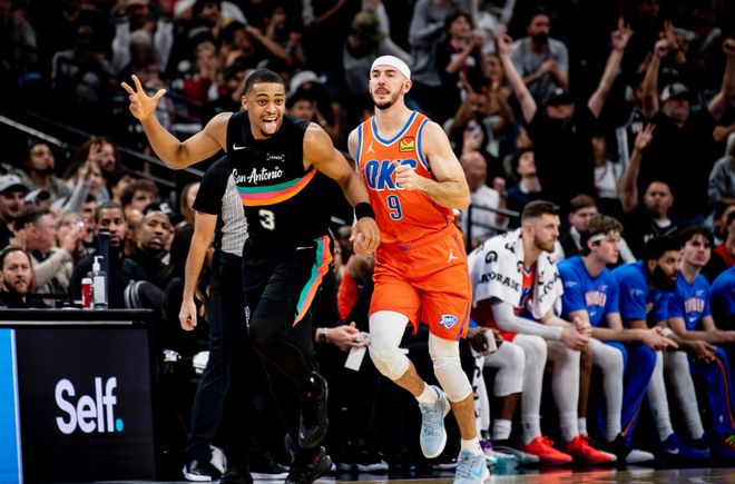 同樣表現(xiàn)出色的還有西部的湖人隊(duì),盡管詹姆斯賽季初期因?yàn)樽巧窠?jīng)痛缺席了一個多月的比賽,但在東契奇和里夫斯雙人組的輪番轟炸下,球隊(duì)也是打出了極具統(tǒng)治力的進(jìn)攻表現(xiàn),一度重置西部前二,的確讓人驚喜;而本賽季最讓人驚喜的,還要當(dāng)屬圣安東尼奧馬刺隊(duì),豪取7連勝(目前聯(lián)盟最長連勝紀(jì)錄)、雙殺聯(lián)盟第一的雷霆,可以說是本賽季NBA最大的黑馬。
