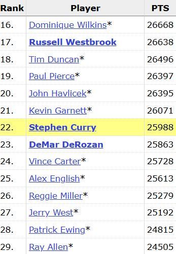 目前排在他身前的是森林狼和綠軍名宿凱文-加內(nèi)特,庫里預計在近幾場比賽中就將完成超越。