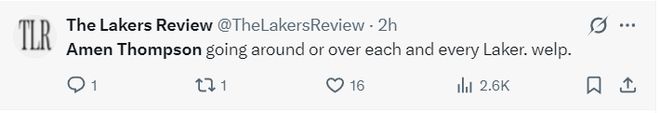 湖人媒體The Lakers Review被阿門打服了,他寫道:好吧,阿門-湯普森擊敗了每一個湖人球員。