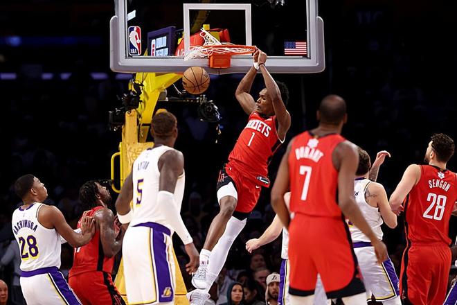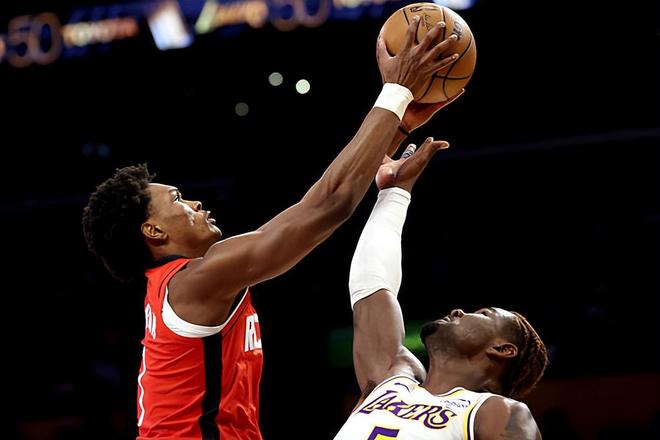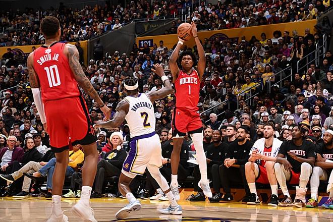 本場比賽中,火箭的先發(fā)控衛(wèi)阿門-湯普森(Amen Thompson)算是將自己的特點(diǎn)發(fā)揮到了極致。阿門全場出場31分51秒,投籃19中12,三分線外2中0,罰球3中2,得到了全場最高分26分外加7籃板5助攻1搶斷的數(shù)據(jù),其中還包括了3個(gè)前場籃板,還有2次失誤和2次犯規(guī),正負(fù)值也是達(dá)到了全場最高的+26。阿門在進(jìn)攻端簡直是勢不可擋,他不斷通過沖擊對手的內(nèi)線完成得分,他在天賦方面的優(yōu)勢肉眼可見,他的沖擊力和爆發(fā)力確實(shí)是太強(qiáng)了,湖人的防守優(yōu)勢如此脆弱,他可以不費(fèi)吹灰之力就直接完成殺傷。除此之外,阿門在防守端也沒有遇到什么太大的麻煩,也算是發(fā)揮出了自己的作用??傮w來看,阿門在本場比賽中的表現(xiàn)非常出色,他也為球隊(duì)的勝利做出了巨大的貢獻(xiàn)。