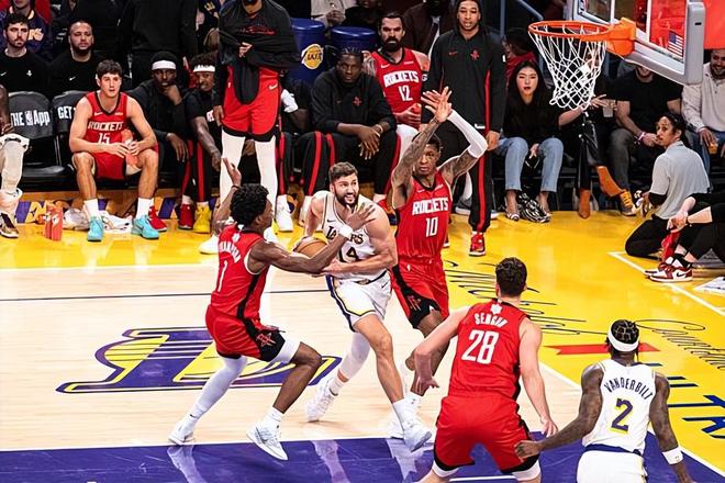 在此前的一場(chǎng)NBA常規(guī)賽中,休斯頓火箭以119比96輕取了主場(chǎng)作戰(zhàn)的洛杉磯湖人。本場(chǎng)比賽后,結(jié)束了兩連勝的火箭的戰(zhàn)績(jī)提升到了18勝10負(fù),繼續(xù)排名西部第6位;而已經(jīng)遭遇了3連敗的湖人的戰(zhàn)績(jī)則是下滑到了19勝10負(fù),繼續(xù)排名西部第4位,但是與身后的明尼蘇達(dá)森林狼和火箭的勝場(chǎng)差都只剩下了半場(chǎng)。