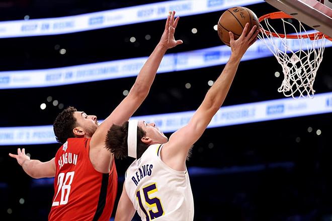 本場比賽中,其實(shí)湖人后場大將奧斯汀-里夫斯(Austin Reaves)也算是球隊(duì)先發(fā)陣容中表現(xiàn)比較好的球員了。里夫斯全場出場14分48秒,投籃8中5,三分線外5中2,得到了12分1籃板1助攻1蓋帽的數(shù)據(jù),還有2次失誤,正負(fù)值為-7。里夫斯在有限的出場時間內(nèi)也是展現(xiàn)出了自己不錯的得分能力,他也有著豐富的進(jìn)攻手段,確實(shí)是在進(jìn)攻端為球隊(duì)提供了不少的幫助和支持。里夫斯的個人防守能力比較有限,這一點(diǎn)大家也都知道,但是在本場比賽中,里夫斯也絕對算不上是湖人全隊(duì)防守表現(xiàn)最差的球員了。然而問題就在于,里夫斯在上半場比賽中就因傷提前離場,下半場更是完全沒打。受到出場時間的限制,他也是很難發(fā)揮出更大的作用了。如果里夫斯能夠保持健康,以他在進(jìn)攻端的狀態(tài),湖人應(yīng)該也能夠稍微少輸一些。