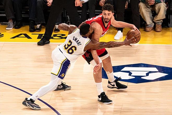 本場(chǎng)比賽中,湖人雖然遭遇了一場(chǎng)慘敗,但是球隊(duì)的替補(bǔ)后場(chǎng)大閘馬庫(kù)斯-斯馬特(Marcus Smart)的表現(xiàn)還是值得肯定的。斯馬特全場(chǎng)出場(chǎng)29分22秒,投籃8中3,三分線外3中0,得到了6分2籃板1助攻1搶斷的數(shù)據(jù),還有1次失誤和1次犯規(guī),正負(fù)值為-2。斯馬特在進(jìn)攻端在外線投籃方面的表現(xiàn)并不理想,確實(shí)是沒(méi)有展現(xiàn)出自己的投射能力,但是他還是通過(guò)自己的努力得到了一些分?jǐn)?shù)。畢竟出手次數(shù)和戰(zhàn)術(shù)地位有限,指望斯馬特在進(jìn)攻端提供更大的支持也不是一件容易的事情。最關(guān)鍵的是,斯馬特在防守端的表現(xiàn)算得上是非常突出,他也是全隊(duì)為數(shù)不多防守態(tài)度積極的球員。斯馬特和賈里德-范德比爾特(Jarred Vanderbilt)是湖人全隊(duì)僅有的兩名認(rèn)真防守的球員,但是他們的努力確實(shí)是沒(méi)有辦法改變球隊(duì)糟糕的防守表現(xiàn)。