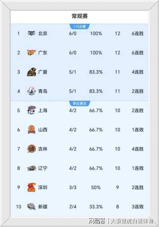 廣東男籃拿到本輪勝利之后,排名重返第二;