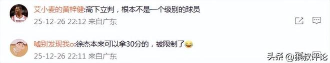 本場(chǎng)比賽,山東男籃后衛(wèi)高詩(shī)巖首發(fā)登場(chǎng)24分鐘,6中0,得到0分3籃板7助攻2犯規(guī),末節(jié)與徐杰的對(duì)位遭到完爆引發(fā)不少爭(zhēng)議,徐杰第四節(jié)交出了三分3中3,單節(jié)得到11分3籃板,率領(lǐng)廣東男籃贏球的絕對(duì)功臣。