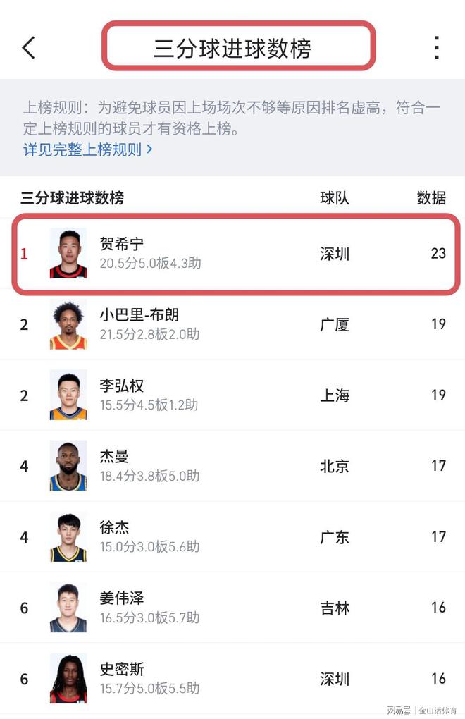 值得一提的是,除了上場(chǎng)時(shí)間和得分在全聯(lián)盟名列前茅,賀西寧還有一項(xiàng)數(shù)據(jù),排在全聯(lián)盟第一位,那就是他的三分球命中數(shù)。截止常規(guī)賽前6輪,賀西寧總共投進(jìn)了23記三分,遙遙領(lǐng)先于所有CBA球員,排在全聯(lián)盟第一位。更恐怖的是,賀西寧的三分命中率高達(dá)40%,同樣創(chuàng)下他職業(yè)生涯新高。