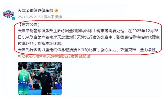 在昨天深夜,天津隊(duì)也是發(fā)布了一個消息,那就是球隊(duì)主教練周金利,因?yàn)榧抑杏惺乱幚?,所以,球?duì)助理教練張德貴,代理球隊(duì)主教練之職。天津隊(duì)這公告,雖然顯然是很客氣。不過,大家都清楚,五連敗的天津隊(duì),只能是讓周金利下課了。就這樣,天津隊(duì)在半年之內(nèi),兩次更換主教練,他們前面的主教練是張慶鵬,目前,張慶鵬在北控隊(duì)執(zhí)教。