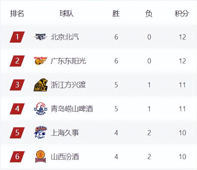 6連勝北京、廣東繼續(xù)領(lǐng)跑,廣廈本輪大勝遼寧32分拿下4連勝,排名上升來到第3,青島擊敗山西連升4名來到第4,上海、山西、遼寧、吉林同積10分分列5-8名。