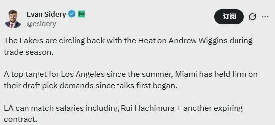 名記Sidery:湖人和熱火重啟關(guān)于維金斯的交易談判......