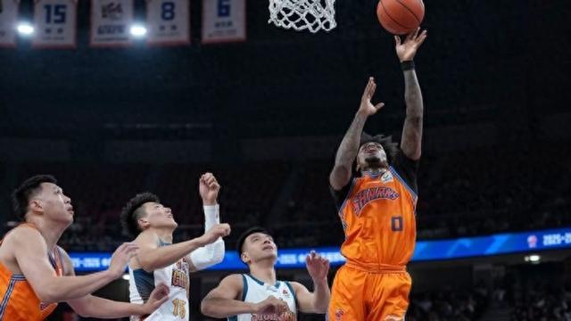 第二節(jié)上海男籃大幅輪換陣容,兩隊進攻命中率都不高,上半場比分為47比18。