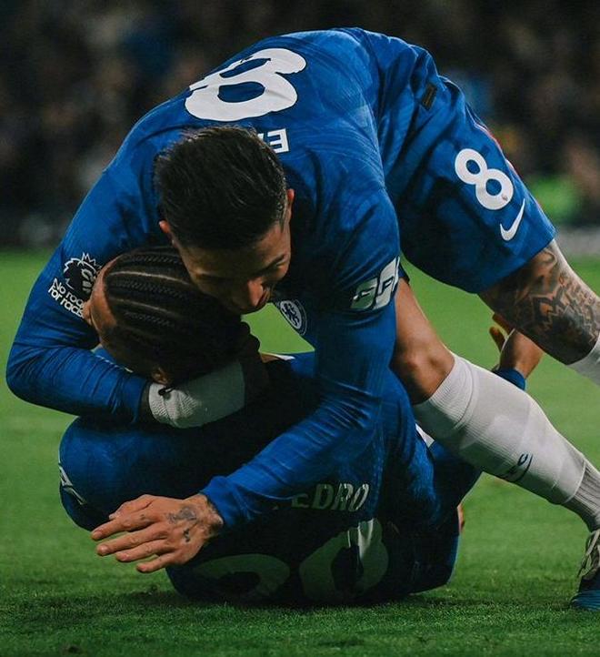 第21分鐘,凱塞多和帕爾默的連續(xù)兩腳打門,都被維拉后衛(wèi)用身體擋出,攻勢很猛的藍軍,在第37分鐘率先取得進球,里斯詹姆斯開出左側角球,若昂佩德羅頭球建功,將比分改寫為了1-0。