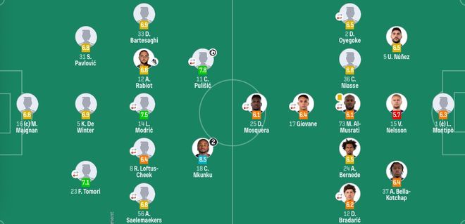 AC米蘭首發(fā):16-邁尼昂、23-托莫里(86'27-奧杜古)、31-帕夫洛維奇、5-德溫特、14-莫德里奇(70'30-亞沙里)、12-拉比奧特、8-奇克(70'19-弗法納)、56-薩勒馬科爾斯(76'24-阿特卡梅)、33-巴特薩吉、18-恩昆庫、11-普利希奇(76'4-里奇)