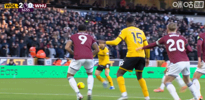 第31分鐘,黃喜燦點射破門,狼隊2-0領先西漢姆