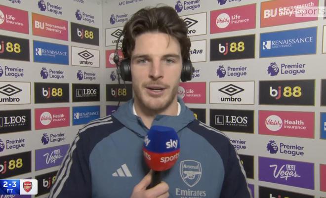 英超第20輪,阿森納客場3-2擊敗伯恩茅斯,此役上演梅開二度的賴斯賽后接受了天空體育的采訪。