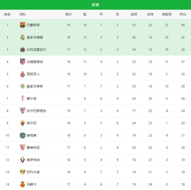 西甲第18輪全面開打,從爭冠到爭四,再到中游與保級區(qū)的拉扯,多支球隊(duì)同時登場。巴薩在加泰羅尼亞德比中頂住壓力,2-0客場拿下大黑馬西班牙人,繼續(xù)領(lǐng)跑;比利亞雷亞爾穩(wěn)扎穩(wěn)打客場3-1埃爾切,全取3分,鞏固歐冠區(qū)位置;而原本被看好的畢爾巴鄂競技卻在客場意外丟分,1-1被奧薩蘇納逼平,另外一場比賽則是,塞爾塔4-1瓦倫西亞,一夜激戰(zhàn)過后,讓歐戰(zhàn)格局再添變數(shù)。