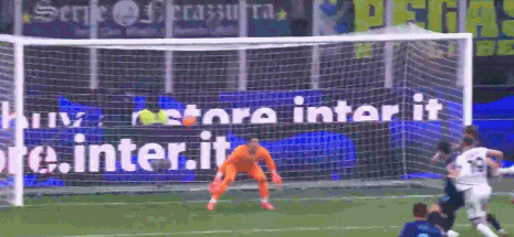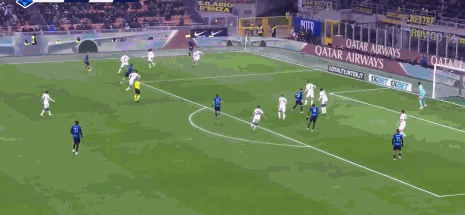 第54分鐘,這才是真實(shí)的自我?勞塔羅面對(duì)半空門射門擊中橫梁