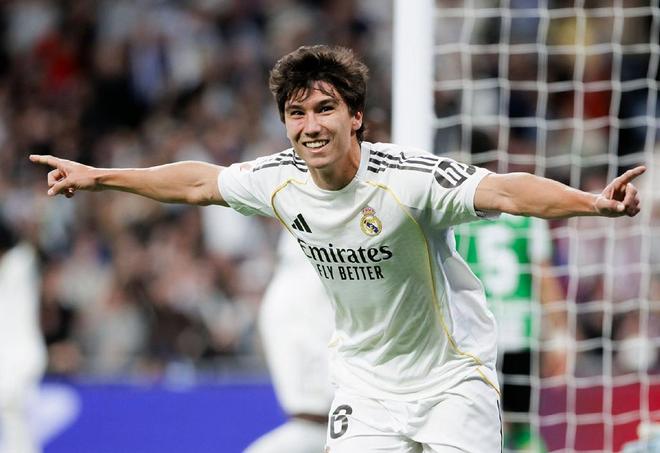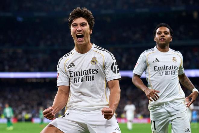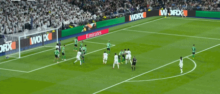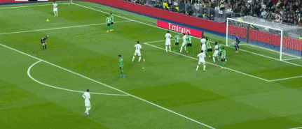 隨著主裁判一聲哨響,皇馬就在伯納烏漫天的加油聲中,朝著皇家貝蒂斯的球門發(fā)起了猛攻,第20分鐘羅德里戈開出左路底線附近的定位球,后點無人盯防的貢薩洛加西亞頭球破門,斬獲自己在西甲的首粒進球,幫助皇馬取得了1-0的領(lǐng)先。