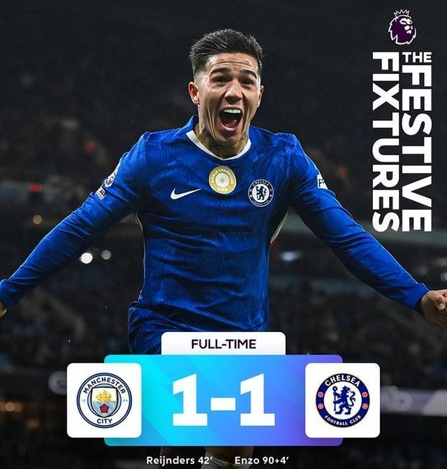 下半場補時第4分鐘,古斯托右側(cè)傳中,恩佐將球踢入門中,切爾西最后時刻扳平,1-1!