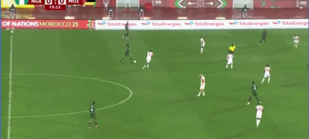 尼日利亞小組賽表現(xiàn)非常突出,3戰(zhàn)全勝殺進16強。今天對陣小組第3出線的莫桑比克,尼日利亞依然保持著良好的狀態(tài),開場后就完全壓制莫桑比克,僅僅1分鐘,奧斯梅恩就在小禁區(qū)內(nèi)搶點破門,只不過他稍稍越位在先,進球被吹掉。第19分鐘,尼日利亞高效進攻撕破莫桑比克防線,伊沃比中場左側(cè)精妙直塞,亞當斯插上突入禁區(qū)倒三角橫傳中路,后排跟進的盧克曼迎球直接大力推射,皮球應(yīng)聲入網(wǎng),尼日利亞1:0首開紀錄。