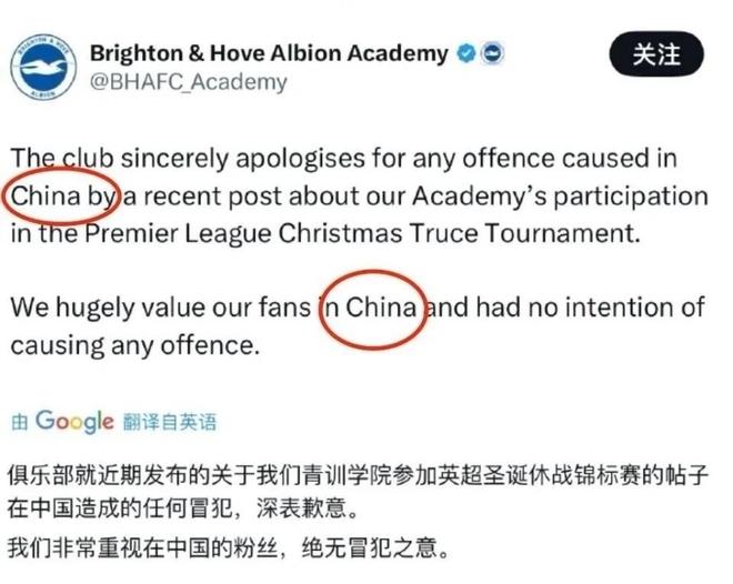 隨后,布萊頓俱樂部刪除照片并道歉:“針對近期發(fā)布的帖子在中國造成的任何冒犯,俱樂部深表歉意。我們非常重視中國的球迷,我們絕無冒犯之意?!?/p>
