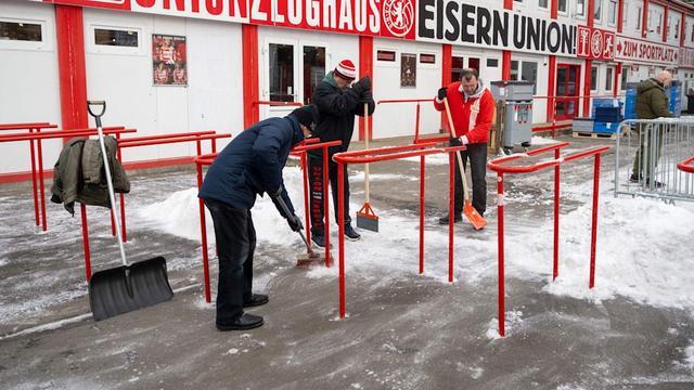 在柏林,柏林聯(lián)合則向球迷發(fā)出“支援請(qǐng)求”,號(hào)召前往球場(chǎng)的球迷自帶除雪工具。自周四起,球場(chǎng)周邊已出動(dòng)挖掘機(jī)清運(yùn)積雪,多名工作人員與志愿球迷一同上陣清掃,為比賽保駕護(hù)航。