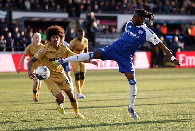 易邊再戰(zhàn),第60分鐘,巴克利-里基茨亂戰(zhàn)破門(mén),第六級(jí)別球隊(duì)麥克斯菲爾德將比分?jǐn)U大至2-0。