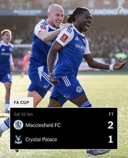 當終場哨響,麥克斯菲爾德不足2000名球迷沖向球場中央,與自家球員瘋狂相擁時,英格蘭足總杯154年的歷史,迎來又一場驚天動地,足以載入史冊的比賽,這支來自英格蘭第六級別聯(lián)賽英議北的“業(yè)余球隊”,2比1將衛(wèi)冕冠軍水晶宮釘在了恥辱柱上。