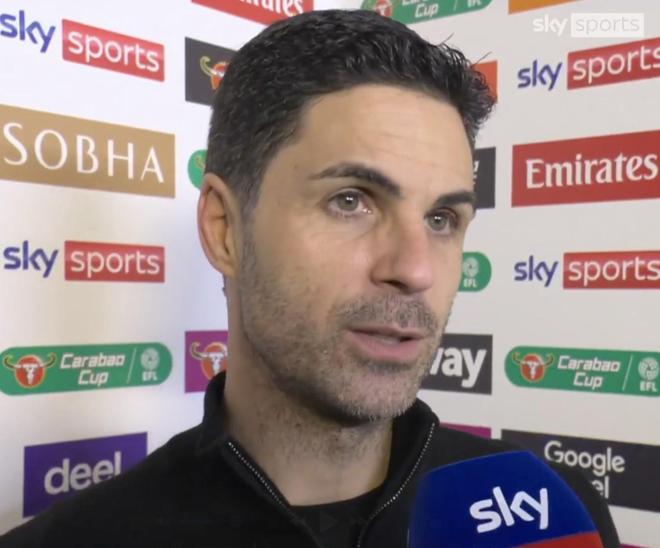 英聯(lián)杯1/4決賽,阿森納通過點球大戰(zhàn)淘汰水晶宮,賽后,槍手主帥阿爾特塔接受了天空體育的采訪。