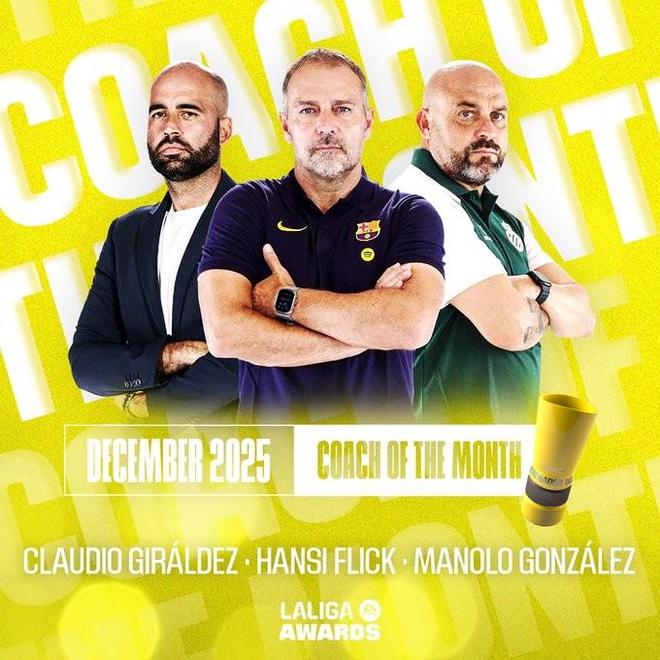 北京時(shí)間12月24日,西甲官方公布了12月最佳教練的候選名單,其中巴薩主帥弗里克、塞爾塔主帥克勞迪奧-希拉爾德斯、西班牙人主帥馬諾洛-岡薩雷斯在列。