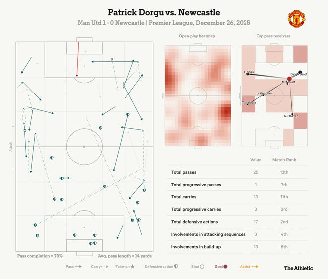 “繼續(xù)做你正在做的事,”這位傳奇后腰的話語(yǔ)給了他信心。到60分鐘時(shí),多爾古累計(jì)觸球達(dá)36次,覆蓋了大片的場(chǎng)地空間。