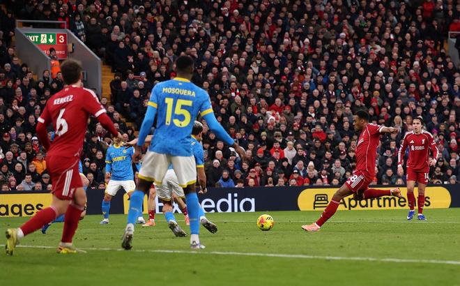 第41分鐘,弗林蓬右側肋部一個加速甩開對手下底倒三角回敲,赫拉芬貝赫不停球勁射打破僵局,1:0!僅僅1分鐘過后,狼隊開球后立馬被搶斷,凱爾凱茲左側前插帶走防守注意力,?;倏顺智蛲七M觀察后斜塞,維爾茨中路反越位前插停球低射遠角,2:0!利物浦短時間之內連進2球,與此同時這是維爾茨在英超的第一粒進球;打破長達7個多月的俱樂部進球荒。
