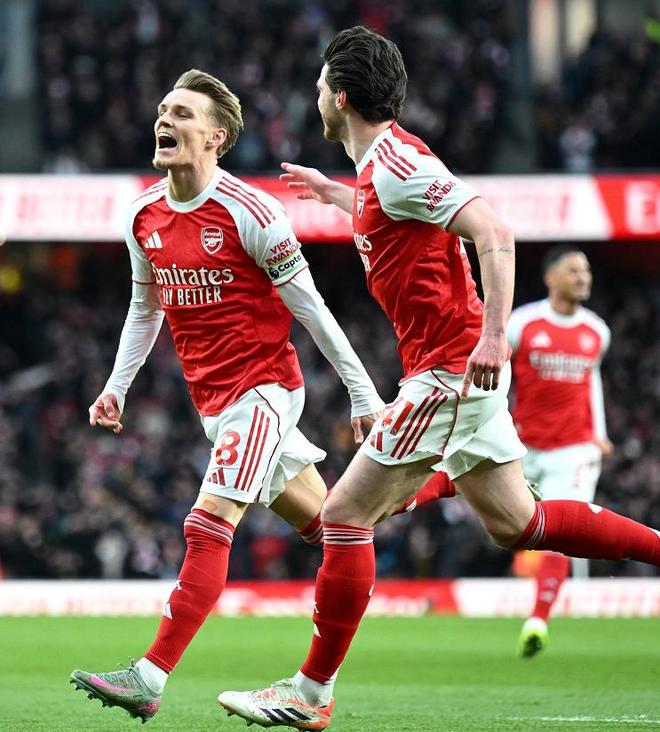 第14分鐘狂攻不止的槍手,終于打破了場(chǎng)上的平衡,薩卡右路拿球牽制防守后,將球回做給了厄德高,后者遠(yuǎn)射破門,打進(jìn)了自己的賽季首球,幫助阿森納取得了1-0的領(lǐng)先,這也是薩卡本年度在主場(chǎng)的聯(lián)賽首個(gè)助攻,半場(chǎng)結(jié)束前,蘇維門迪禁區(qū)內(nèi)的腳后跟射門被封堵,隨后特羅薩德的補(bǔ)射直接踢飛。