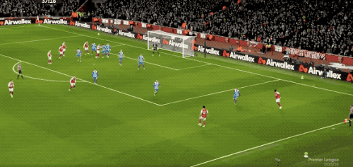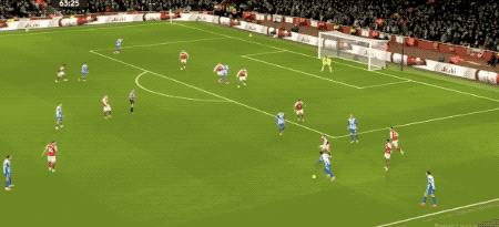 第85分鐘,薩卡及時(shí)傳中,馬丁內(nèi)利突然繞到前點(diǎn),將球打飛。