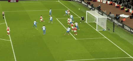 第44分鐘,阿森納連續(xù)圍攻布萊頓的球門,蘇維門迪腳后跟射門,被維爾布魯根奮力擋出。